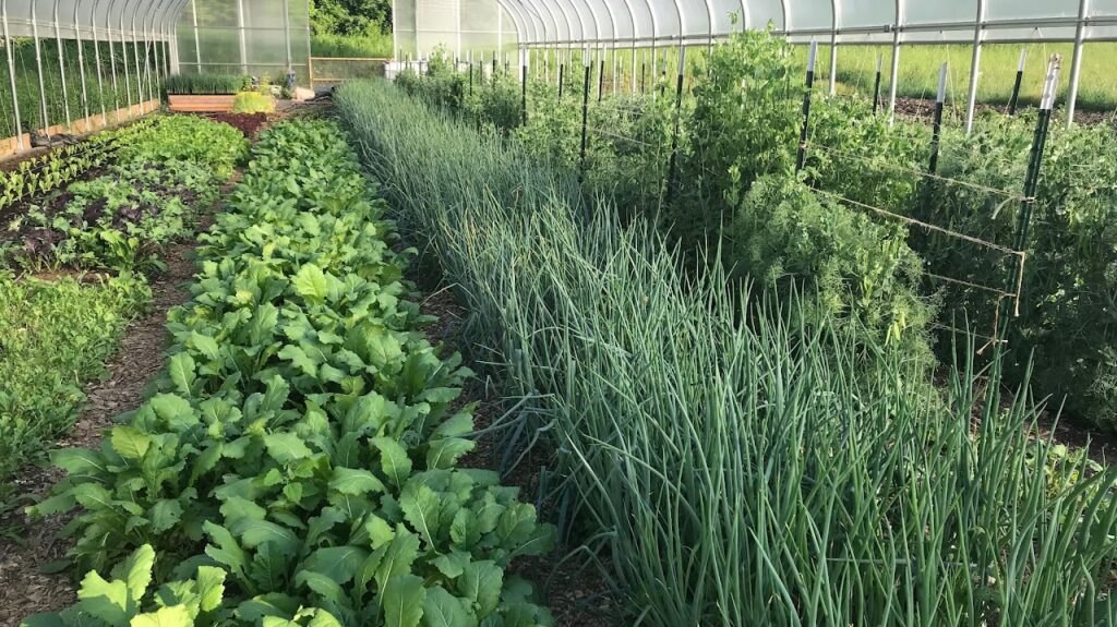 We use season extension techniques such as high tunnel growing to bring you fresh vegetables starting in early June and continuing through October